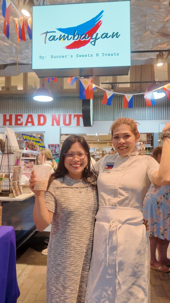 The staff greeted us warmly, and I had the chance to speak with the owner, Kathy Mirano, for a short interview. Kathy is a Filipino immigrant who worked at the market for 21 years before opening Tambayan, which means “a place to hang out.” Her journey began during the pandemic, selling small cakes to essential workers under the name “Runners Sweets and Treats,” inspired by her love for running.